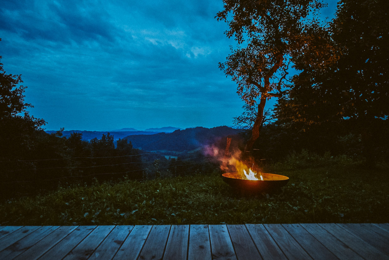 Zunaj sta na voljo žar na oglje ter vrtni ogenj.